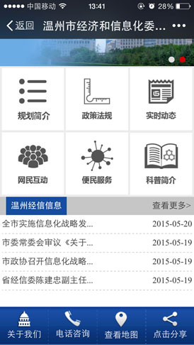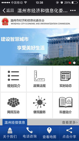 該公眾平臺(tái)主要分為三大版塊,分別是“智慧專(zhuān)題”“便民服務(wù)”和“微官網(wǎng)”。其中,便民服務(wù)可為市民提供一站式的綜合服務(wù),涉及與市民生活息息相關(guān)、社會(huì)關(guān)注度高的醫(yī)院掛號(hào)預(yù)約、交通出行、旅游資訊、社保查詢(xún)、市民卡查詢(xún),出入境證件辦理查詢(xún)、房產(chǎn)證登記辦理查詢(xún)、土地證登記查詢(xún)、公積金查詢(xún)、中考錄取查詢(xún)、溫州市圖書(shū)館借閱查詢(xún)……目前,該平臺(tái)的“便民服務(wù)”一欄已匯集了33項(xiàng)便民信息化服務(wù)。