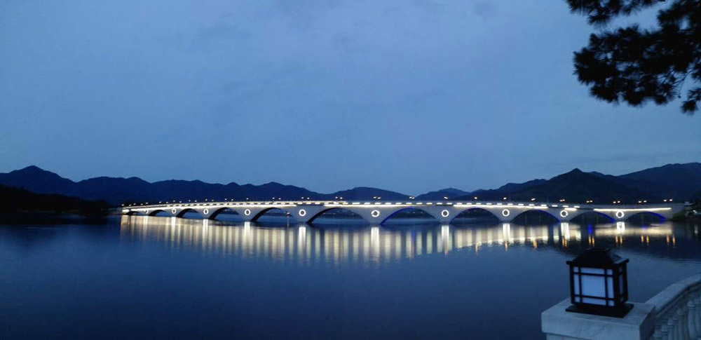 隨著夜色的降臨,大家回到酒店,一場(chǎng)淅瀝的小雨過(guò)后,把白天最后的一絲熱意去除。夜幕下的四明湖如一個(gè)蒙上面紗的少女一般,羞怯怯的卻藏不住她的美。