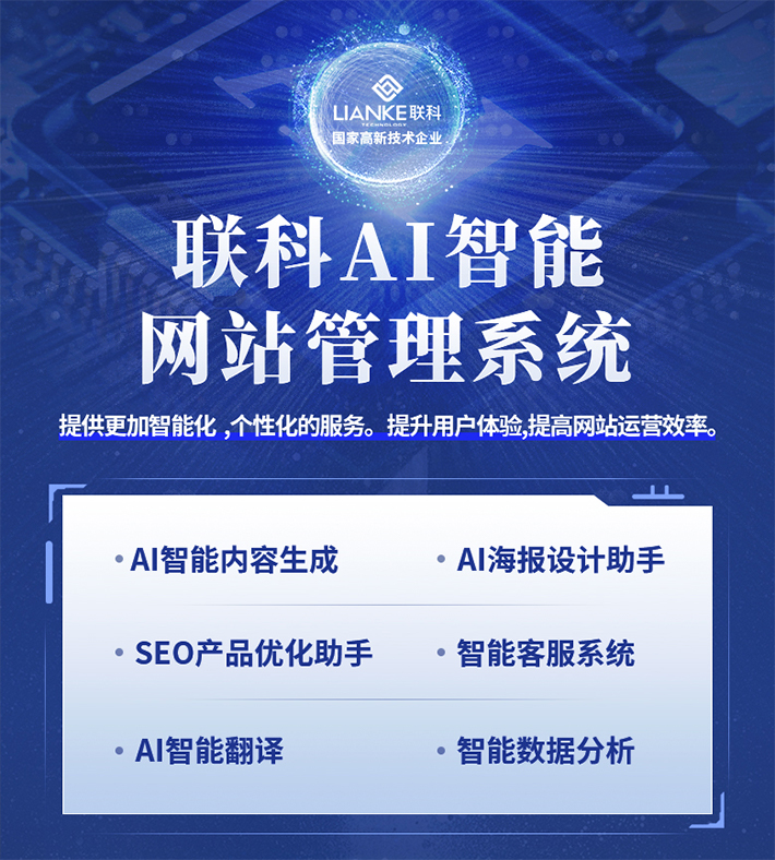 在當(dāng)今數(shù)字化浪潮下,企業(yè)面臨著前所未有的挑戰(zhàn)與機遇。如何在激烈的市場競爭中脫穎而出,不僅取決于產(chǎn)品和服務(wù)的質(zhì)量,更在于如何高效、智能地管理和優(yōu)化企業(yè)的線上門戶。聯(lián)科AI智能網(wǎng)站管理系統(tǒng),正是一款為現(xiàn)代企業(yè)量身打造的工具,它以人工智能為核心,旨在提供更加智能化、個性化的服務(wù),提升用戶體驗,提高網(wǎng)站運營效率。