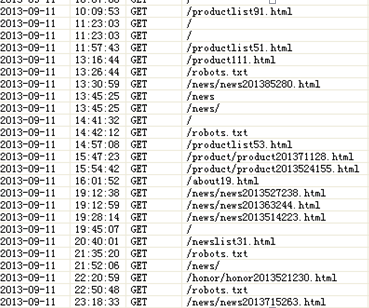 第三,綜合的指導(dǎo)。經(jīng)常性我們?cè)谌罩纠锟梢园l(fā)現(xiàn)一些返回值不是200的條目,而通過(guò)日志的返回值我們就可以很容易地找到,這個(gè)頁(yè)面,并且對(duì)于這個(gè)頁(yè)面的錯(cuò)誤或者不足進(jìn)行修改。而通過(guò)對(duì)于網(wǎng)站每天日志的對(duì)比記錄,我們可以發(fā)現(xiàn),蜘蛛每天來(lái)網(wǎng)站的次數(shù)是增加了還是減少了。如果增加了,是一些友好的IP還是不好的IP,這些記錄又是從哪個(gè)入口進(jìn)入的。從而分析出我們?cè)谌粘5木W(wǎng)站SEO工作中,在哪些方面是做得比較好的,哪些方面是不足的。