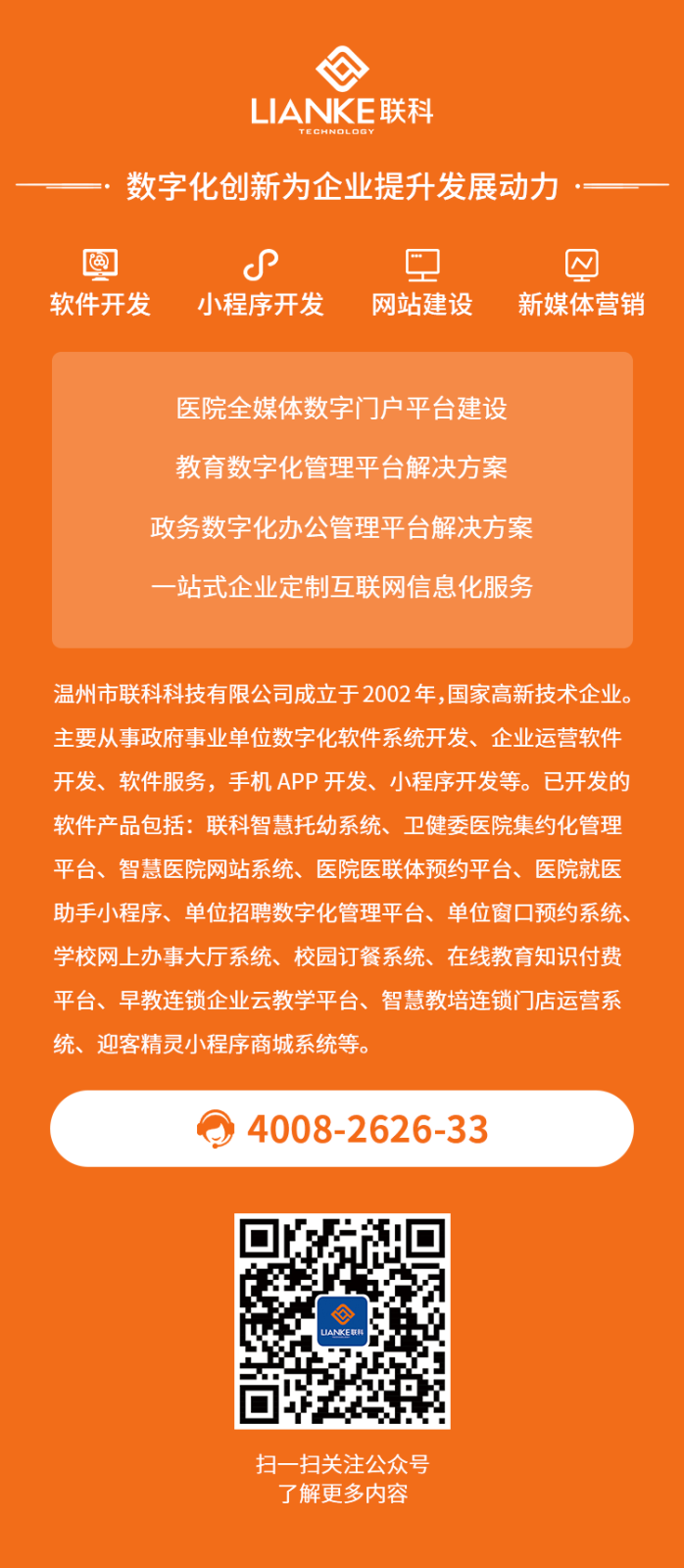 聯(lián)科科技23年專注于全媒體數(shù)字門戶系統(tǒng)、門戶網(wǎng)站內(nèi)容管理平臺、集約化醫(yī)院站群管理系統(tǒng)開發(fā)、