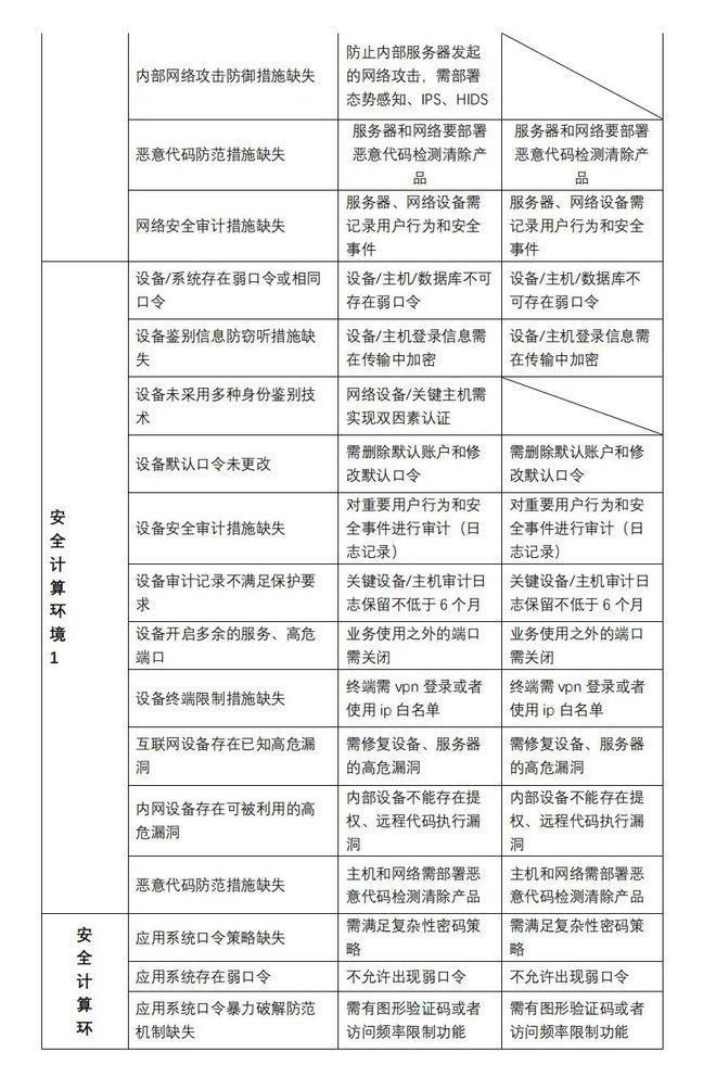 本文參考了《T/ISEAA 001-2020 網(wǎng)絡(luò)安全等級保護(hù)測評高風(fēng)險(xiǎn)判定指引》,整理出了等保三級、二級所需產(chǎn)品和要求。研發(fā)或運(yùn)維人員通過該表可直觀了解自己的系統(tǒng)與等保要求存在的差距,并做出相應(yīng)整改。